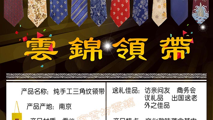 宜贡坊 南京云锦领带 云锦纯手工三角纹领带 中国风特色工艺礼品商务礼盒